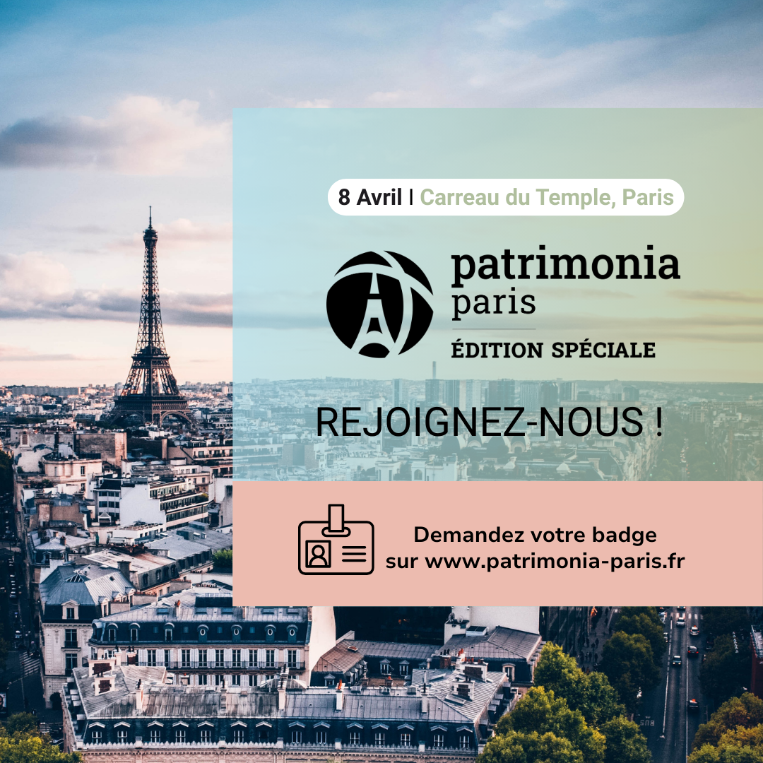 Les bannières et les posts peuvent être redirigés vers le formulaire d'inscription : www.patrimonia-paris.fr/inscription