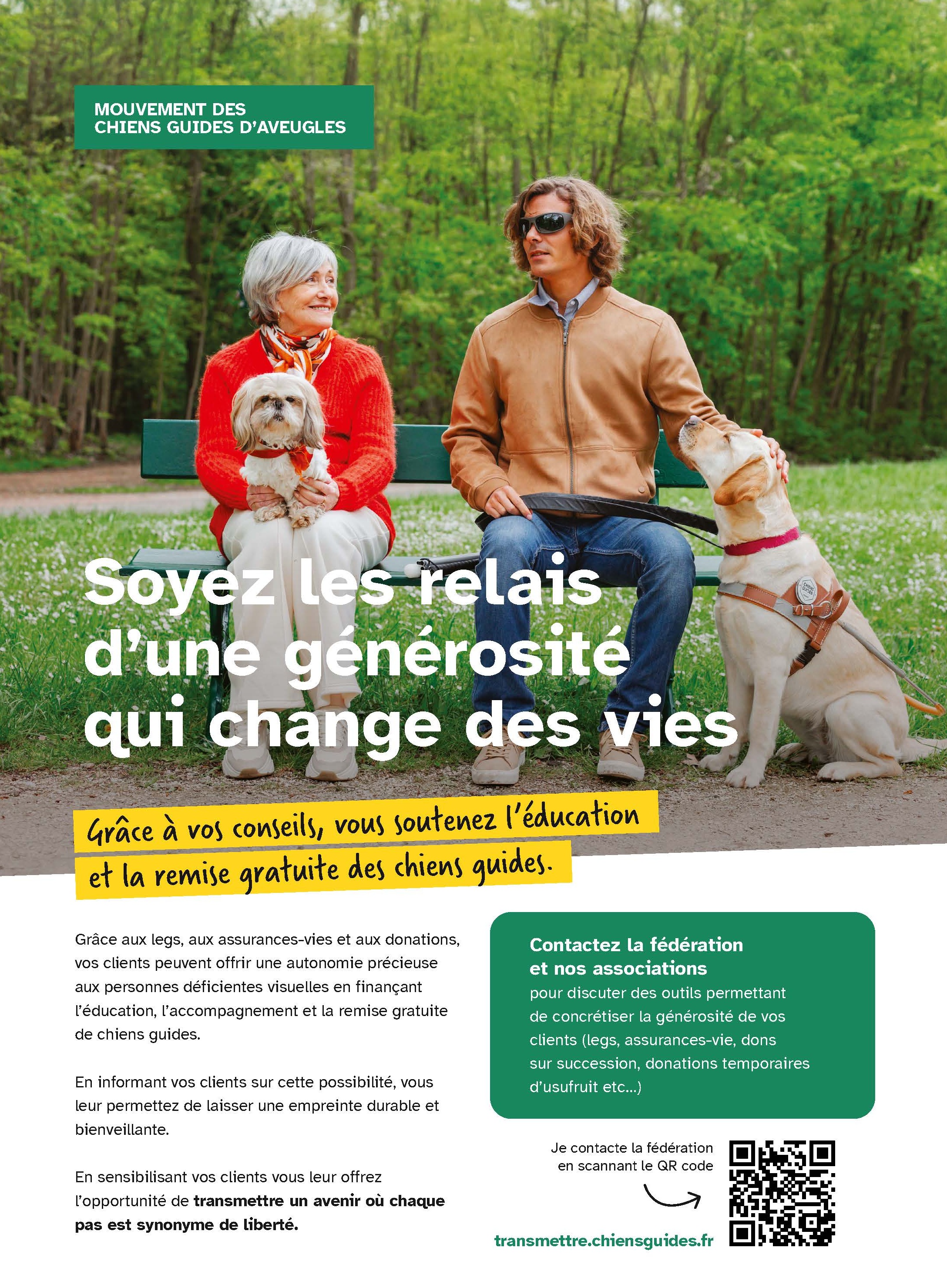 - Créée en 1972, la FFAC grâce à ses associations membres contribue à la formation et à la remise gratuite de plus de 200 chiens guides, par an, aux personnes aveugles ou malvoyantes en France, leur permettant d’accéder à une plus grande autonomie dans leur quotidien. La Fédération mène également des campagnes de promotion du chien guide auprès des utilisateurs potentiels et du grand public, et de sensibilisation sur l’accessibilité et les droits des personnes déficientes visuelles.
